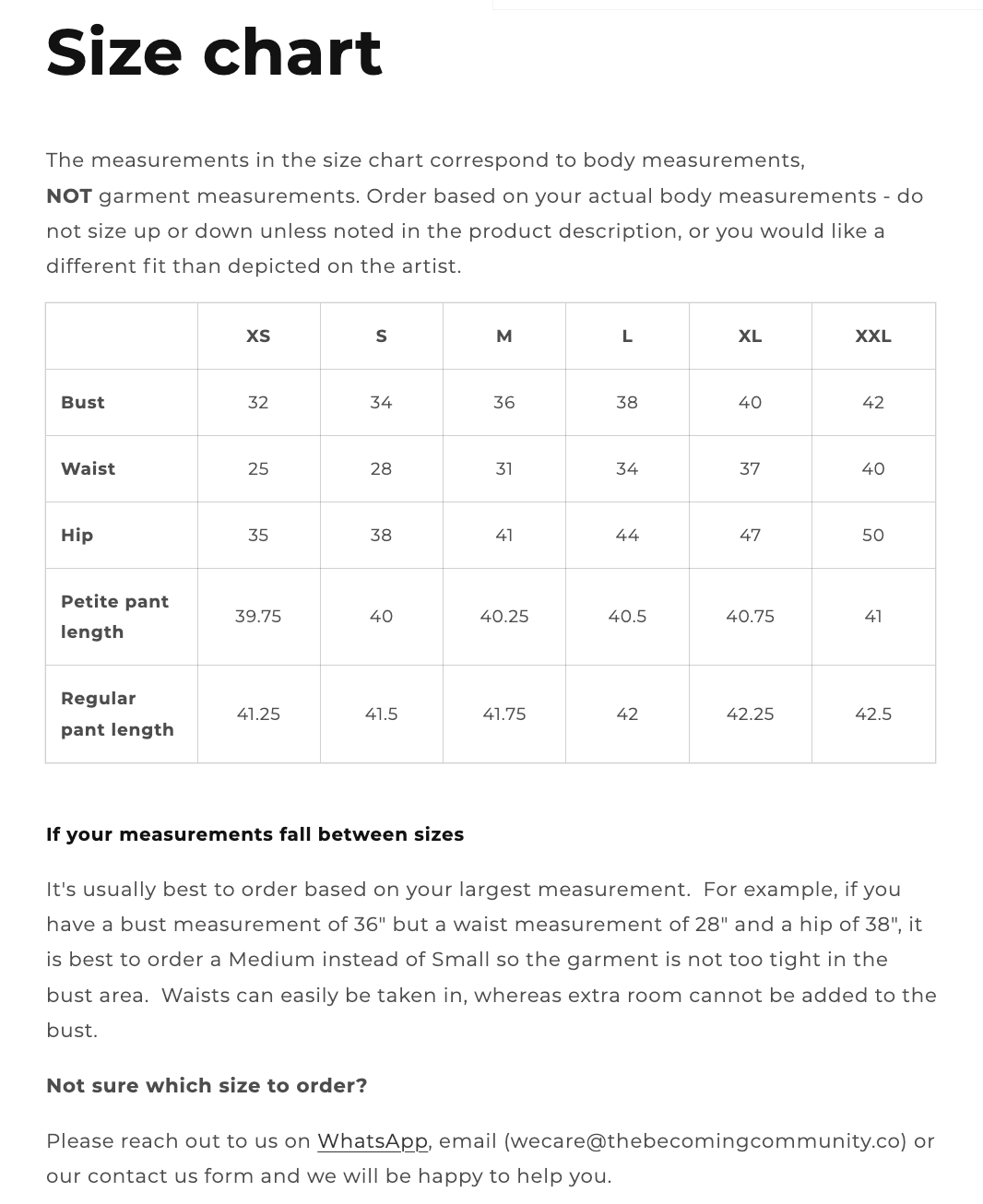 A detailed size guide to understand why we are offering height friendly fits and how to measure the body is provided in the link here.